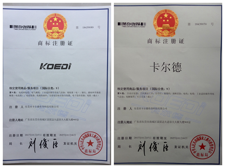 卡尔德商标证书
